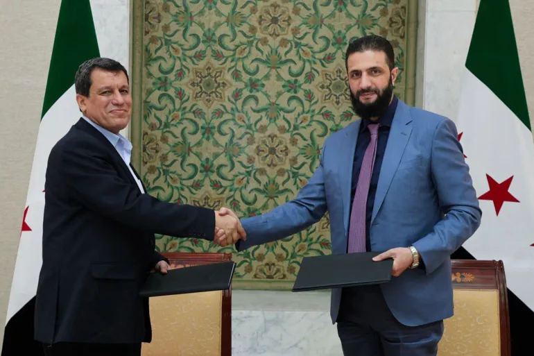 وفي العاشر من مارس/آذار الماضي، وقّع الرئيس الشرع وعبدي اتفاقا في دمشق وصف حينها بأنه تاريخي، نص على وقف شامل لإطلاق النار ودمج مؤسسات "قسد" المدنية والعسكرية ضمن الدولة السورية، بما فيها المعابر والمطارات وحقول النفط.