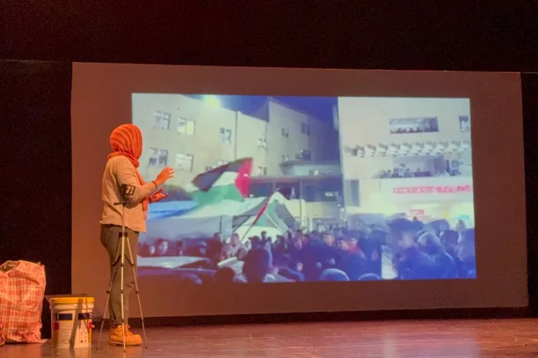تقول الفنانة كوزيت شديد نت: "قدّمنا اليوم عرضا مسرحيا يروي حكايات نساء من الجنوب اللبناني ومن غزة عن معاناتهن خلال الحرب وفترات الإبادة".