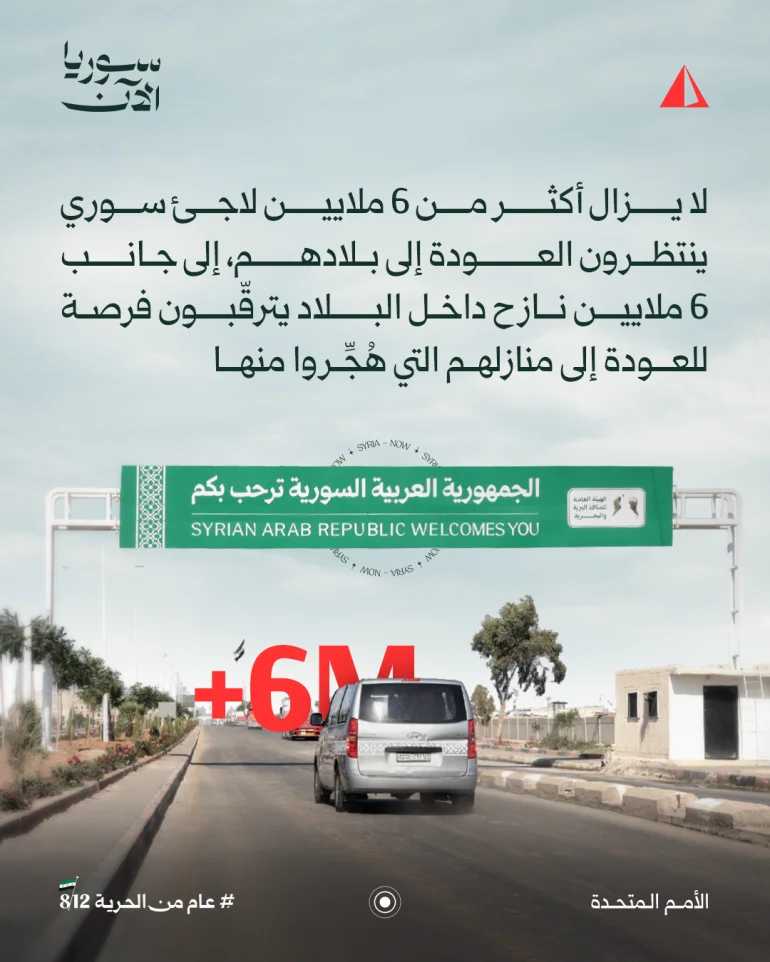 ولا يزال أكثر من 6 ملايين لاجئ سوري ينتظرون العودة، إلى جانب 6 ملايين نازح داخليا يترقبون فرصة العودة إلى منازلهم التي هجروا منها.