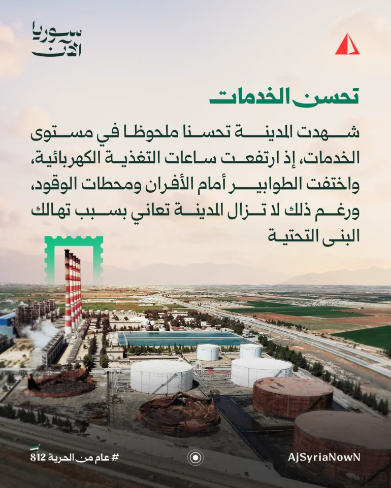 وفي الذكرى الأولى للتحرير، ترصد الجزيرة أبرز ملامح التغيير التي شهدتها المدينة، بين تحسن ملحوظ في بعض القطاعات، وتحديات لا تزال قائمة في قطاعات أخرى.