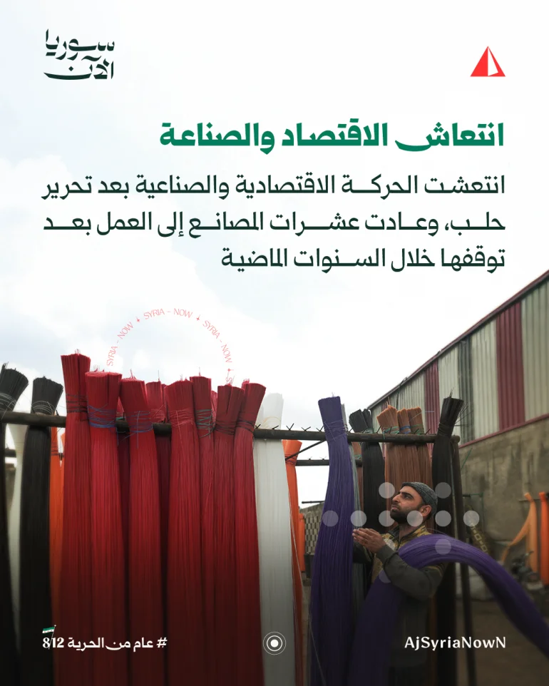 ويقول رئيس غرفة الصناعة في حلب إن عودة الأمن وفتح خطوط الإمداد كانا أبرز عاملين في تحريك عجلة الإنتاج، لكنه يشير إلى أن القطاع الصناعي لا يزال بحاجة إلى دعم إضافي لتجاوز آثار الحرب الطويلة.